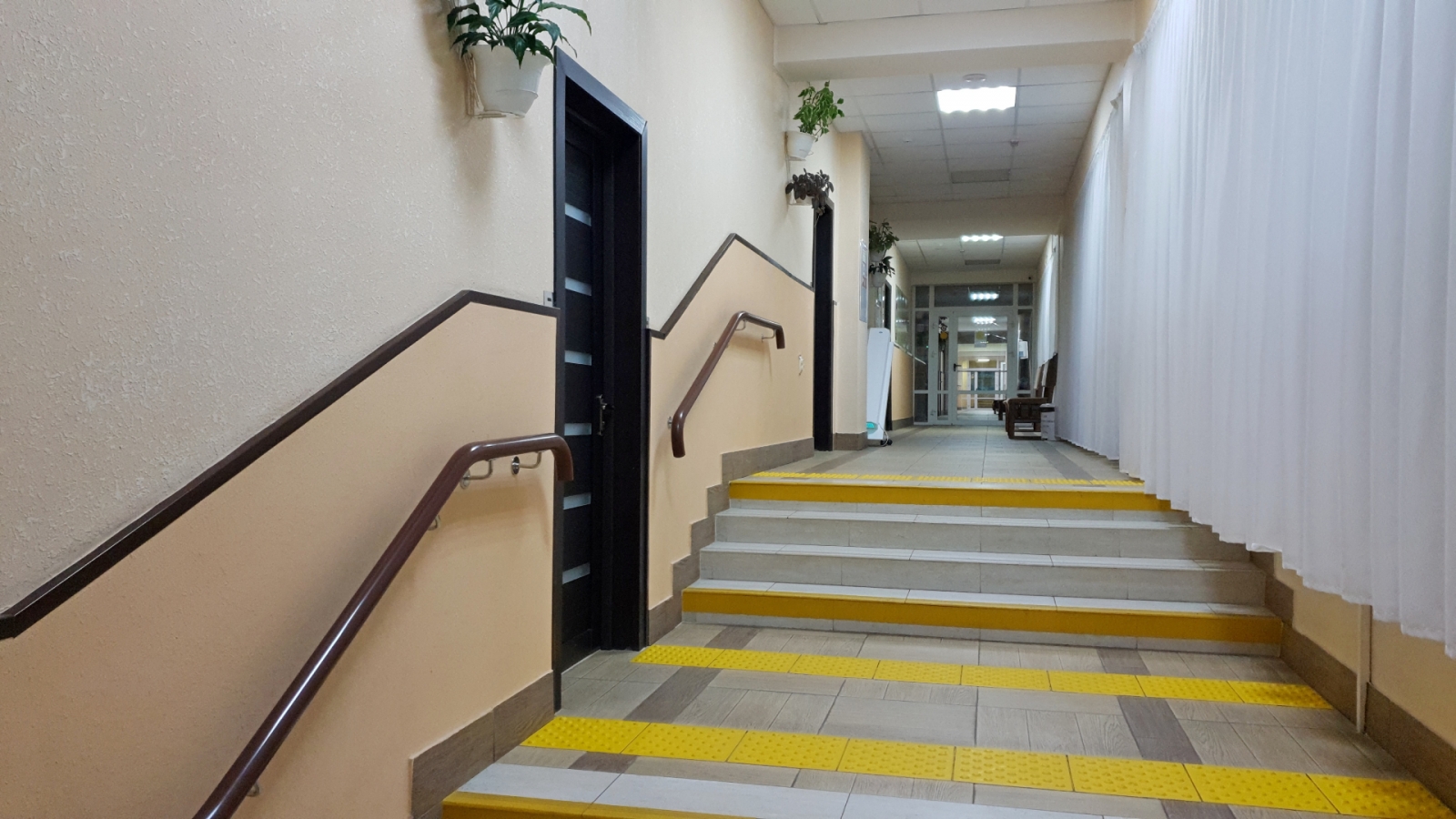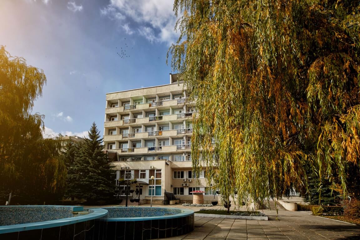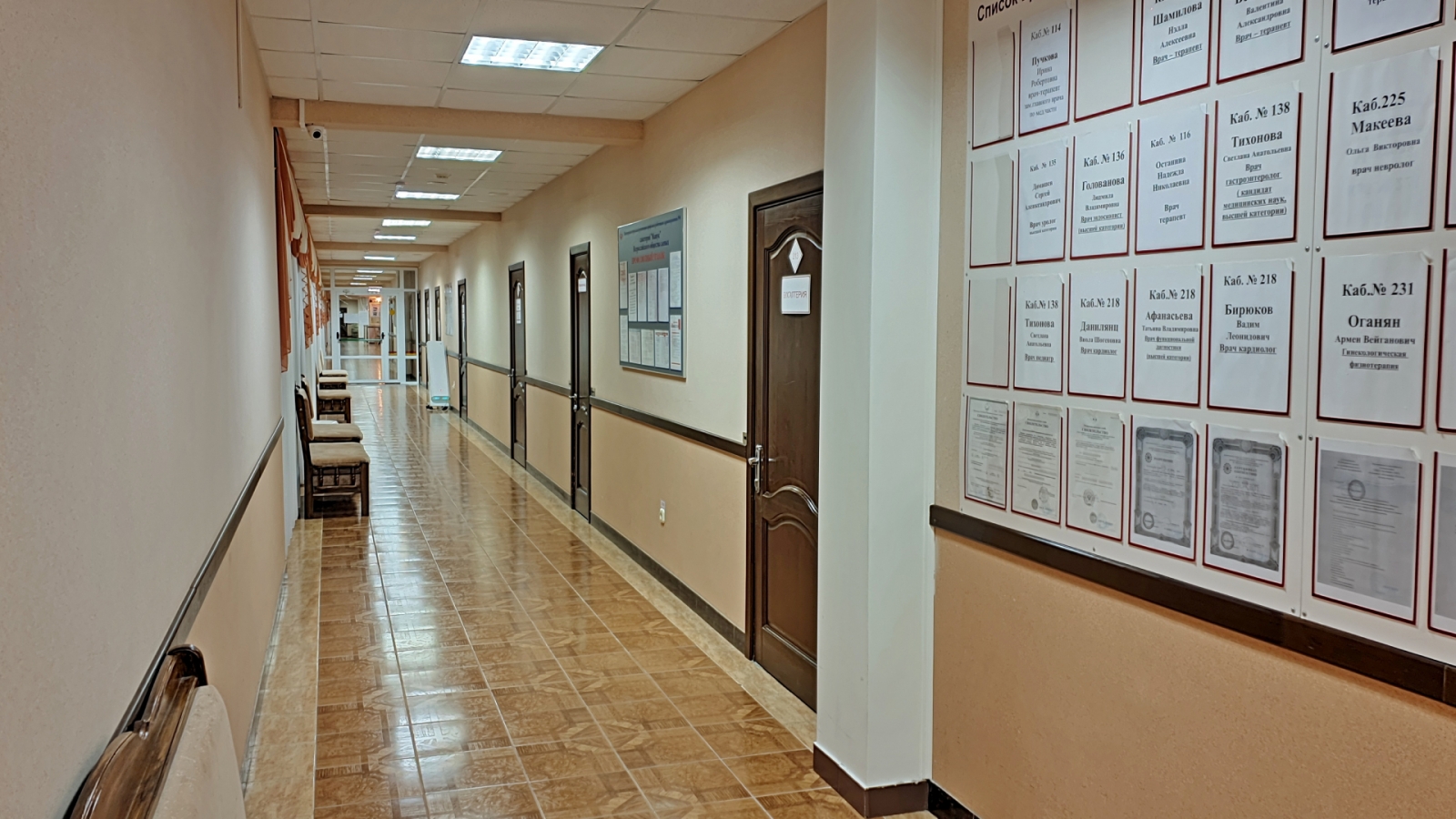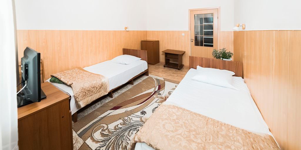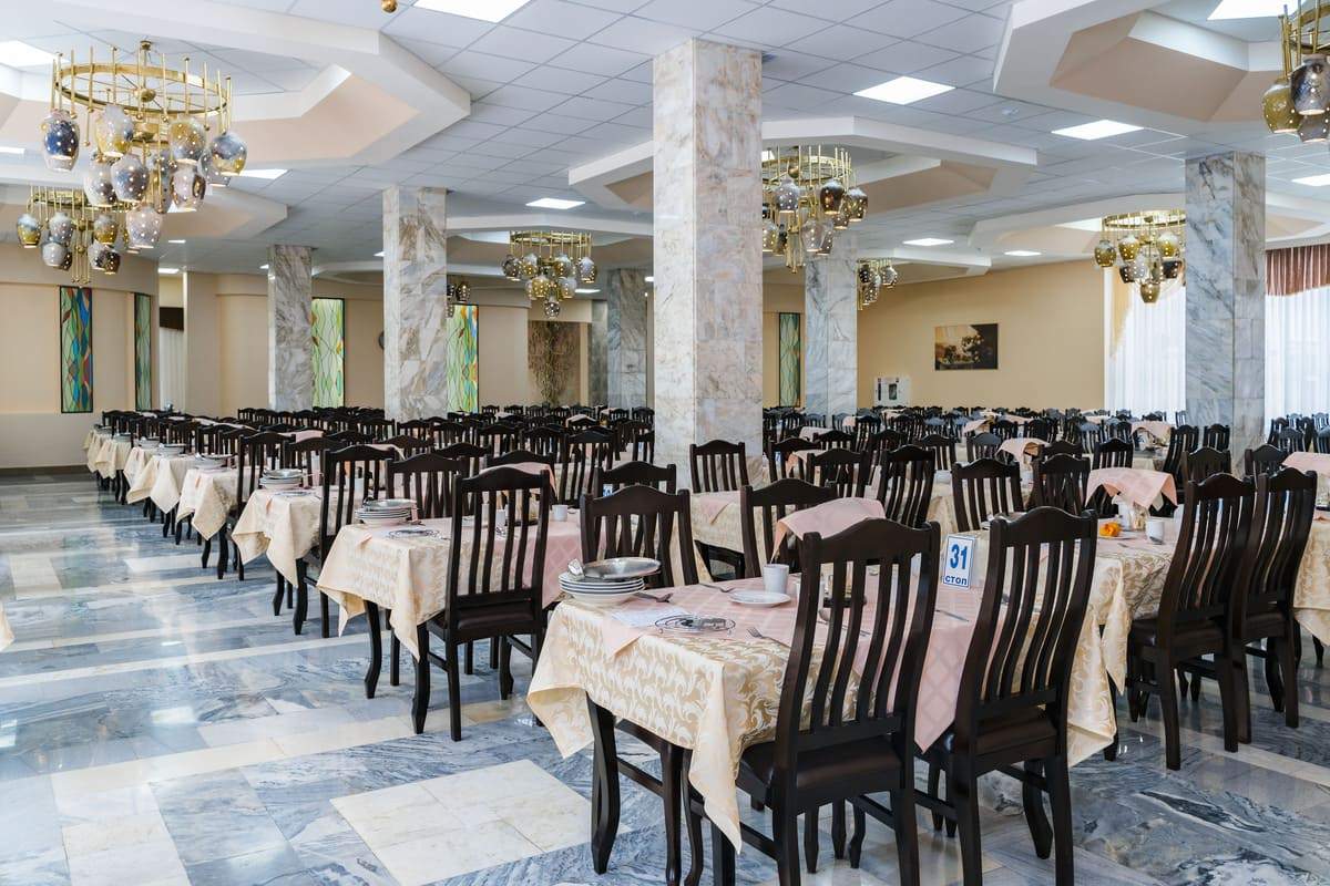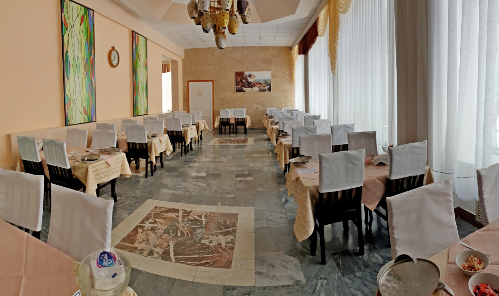 В современном 8-этажном корпусе с лифтами, всех административных и медицинских служб, спальных номеров, столовой, клуба, плавательного бассейна, зала лечебной физкультуры, киноконцертного зала на 320 мест.