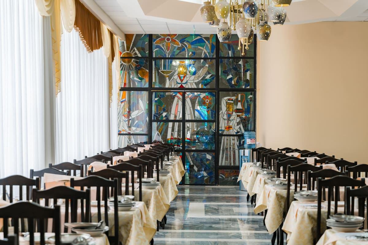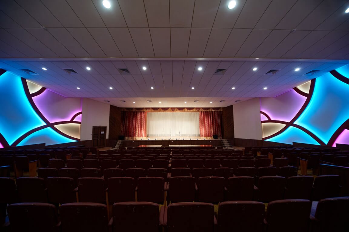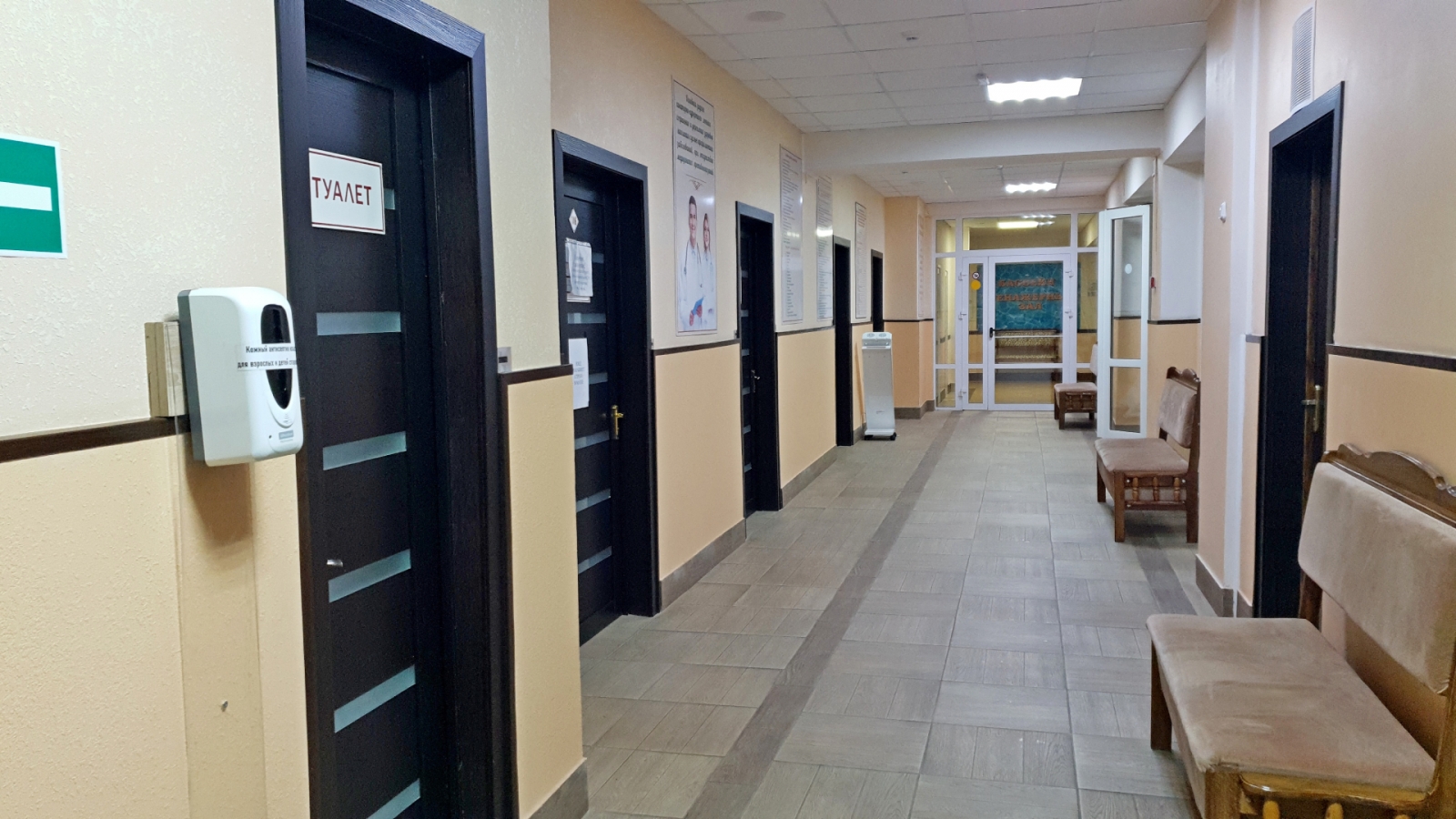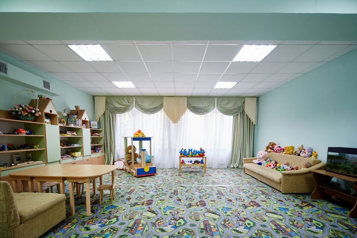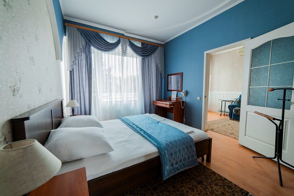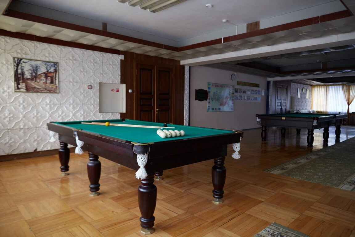В современном 8-этажном корпусе с лифтами, всех административных и медицинских служб, спальных номеров, столовой, клуба, плавательного бассейна, зала лечебной физкультуры, киноконцертного зала на 320 мест.
